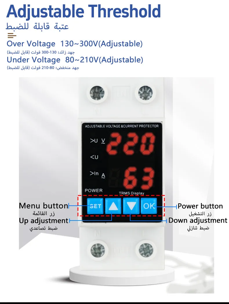 - Test funzionale: manualmente o utilizzando un alimentatore regolabile, abbassare la tensione al di sotto della soglia di sottotensione e osservare se la protezione interrompe il carico; quindi ripristinare la tensione normale e verificare se la protezione si ripristina automaticamente dopo il ritardo impostato.